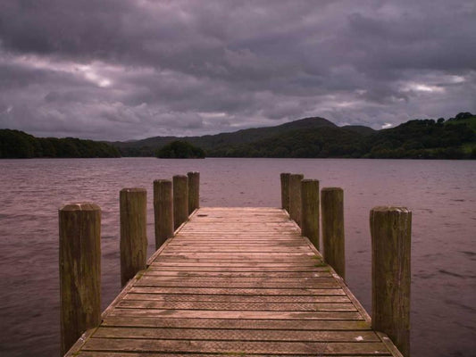 Jetty at dusk, lake district, Cumbria White Modern Wood Framed Art Print with Double Matting by Frank, Assaf
