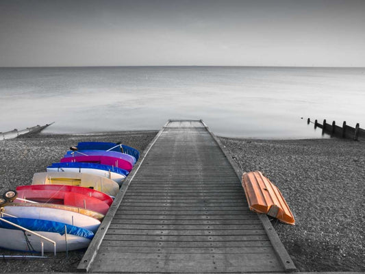 Kayaks on the side of pier White Modern Wood Framed Art Print with Double Matting by Frank, Assaf