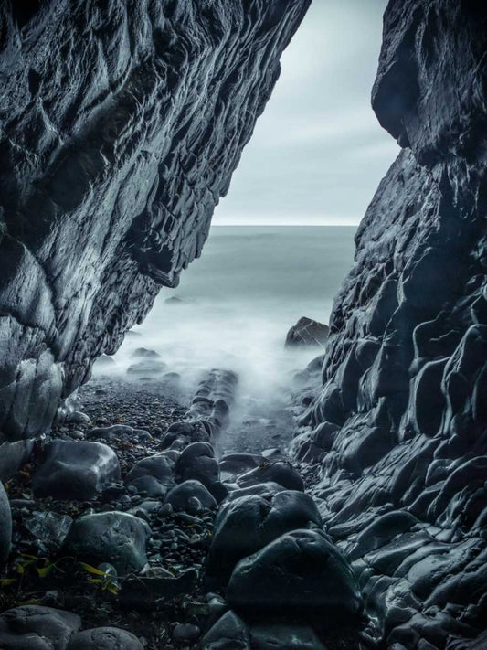 Rocky coastline of Duckpool White Modern Wood Framed Art Print with Double Matting by Frank, Assaf