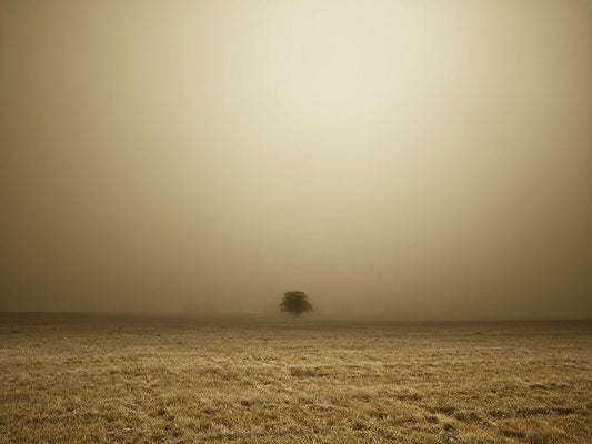 Single Tree in mist and fog White Modern Wood Framed Art Print with Double Matting by Frank, Assaf