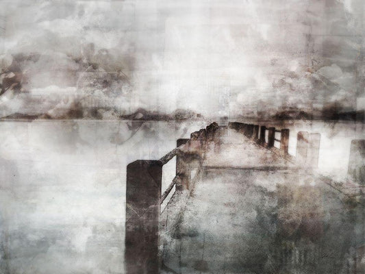 Misty Pier White Modern Wood Framed Art Print with Double Matting by Roko, Ken
