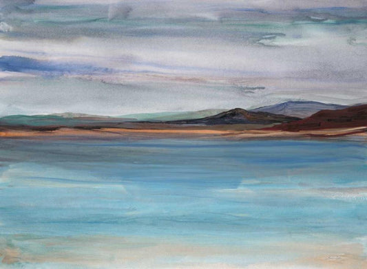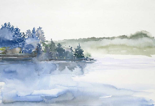 Lakefront Watercolor White Modern Wood Framed Art Print with Double Matting by Gold, Lora