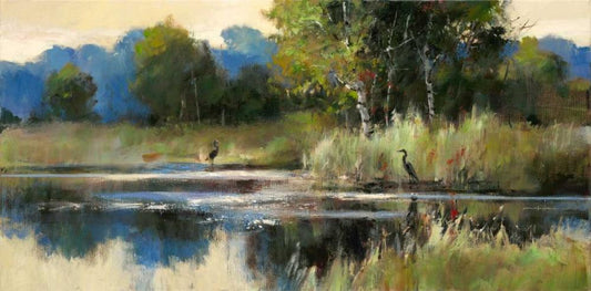 Heron Landscape 2 White Modern Wood Framed Art Print with Double Matting by Heighton, Brent
