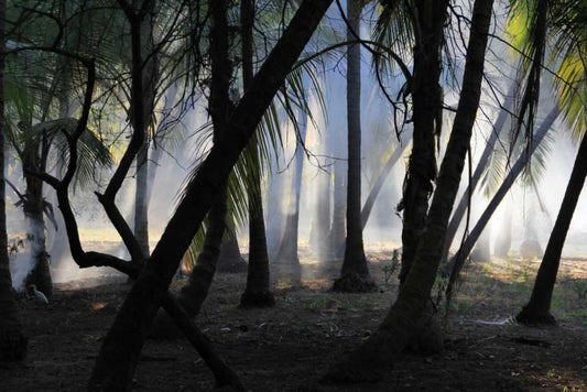 Dreams and Trees Landscape White Modern Wood Framed Art Print with Double Matting by Theodosiou, Matina