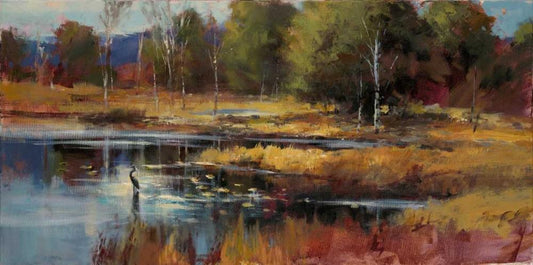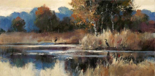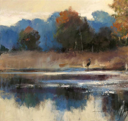 Heron Landscape White Modern Wood Framed Art Print with Double Matting by Heighton, Brent
