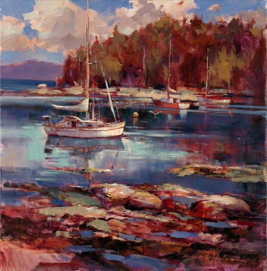 Peaceful Cove White Modern Wood Framed Art Print with Double Matting by Heighton, Brent