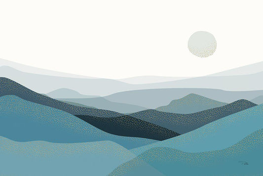 Blue Mountainscape I White Modern Wood Framed Art Print with Double Matting by Chapman, Marcy