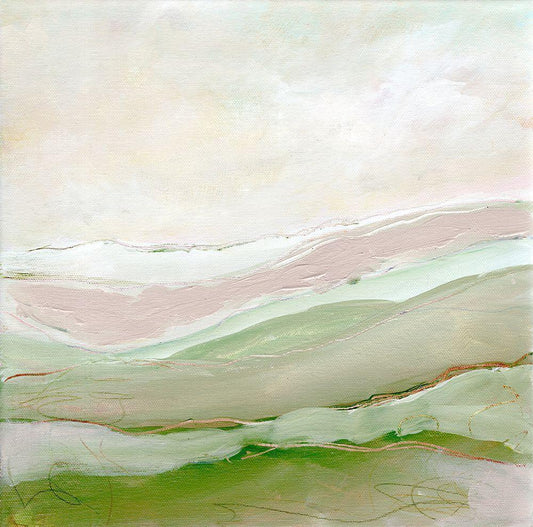 Green and Pink Hills I White Modern Wood Framed Art Print with Double Matting by Chapman, Marcy