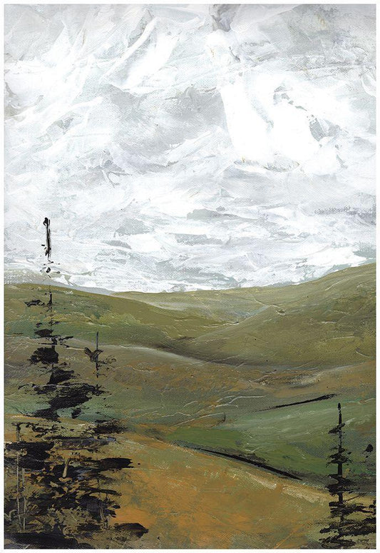 Soft Green Hills White Modern Wood Framed Art Print with Double Matting by Chapman, Marcy