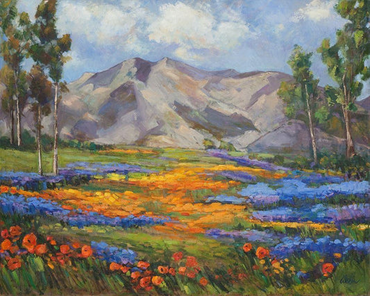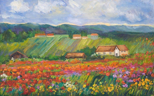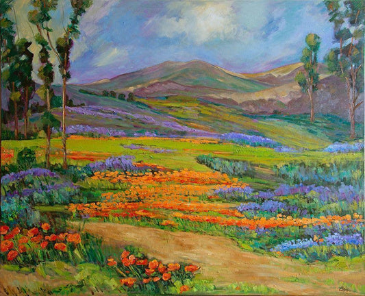 Poppy Field Valley White Modern Wood Framed Art Print with Double Matting by Fine, Alexi