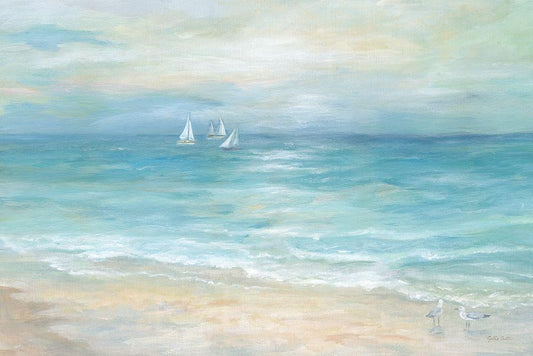Beach Day Landscape II White Modern Wood Framed Art Print with Double Matting by Cusson, Marie Elaine