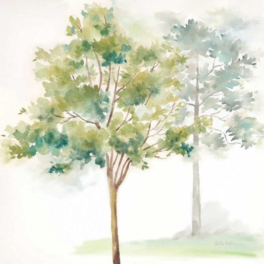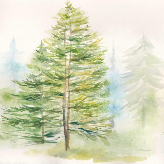 Watercolor Landscape with trees White Modern Wood Framed Art Print with Double Matting by Coulter, Cynthia
