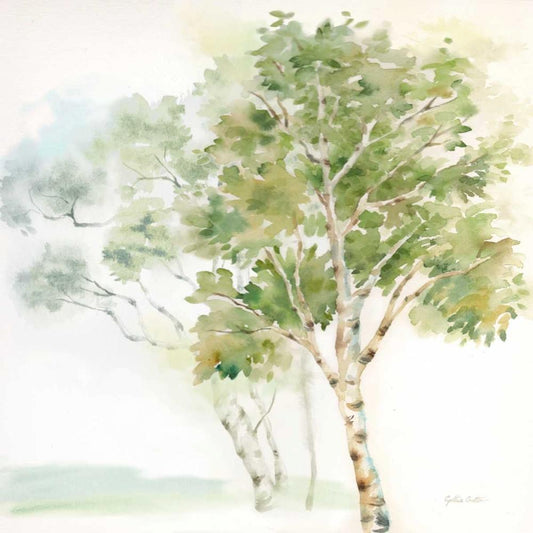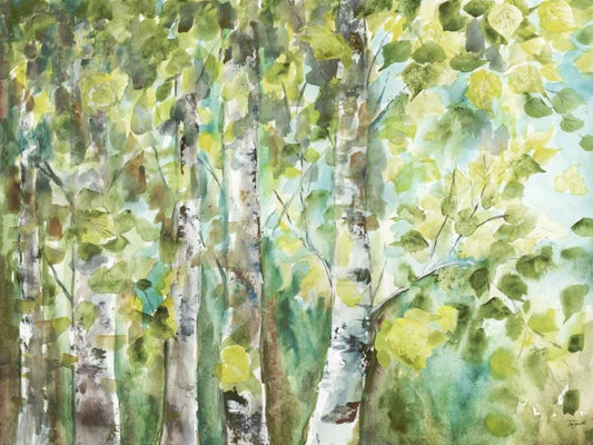 Watercolor Summer Aspens White Modern Wood Framed Art Print with Double Matting by Tre Sorelle Studios