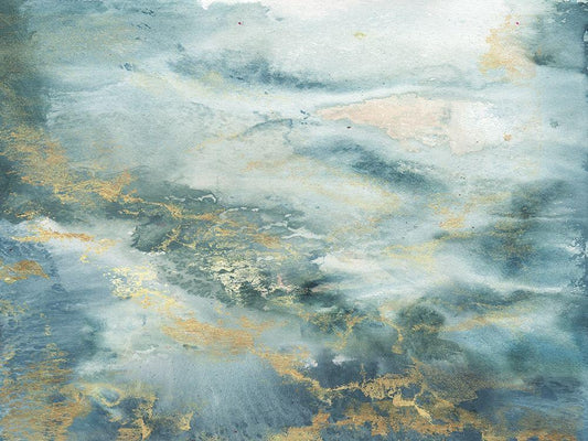 Blue Watercolor Abstract White Modern Wood Framed Art Print with Double Matting by Tre Sorelle Studios