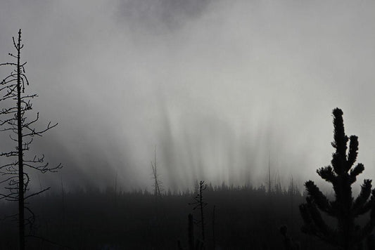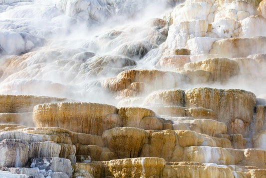 Snow Slurries at Mammoth Hot Springs Terraces, Yellowstone National Park White Modern Wood Framed Art Print with Double Matting by The Yellowstone Collection