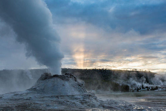 Sunrise at Castle Geyser, Yellowstone National Park White Modern Wood Framed Art Print with Double Matting by The Yellowstone Collection