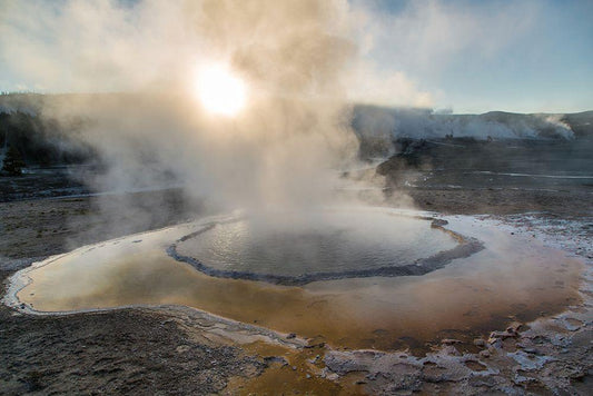 Steam Shadow at Dryad Spring, Yellowstone National Park White Modern Wood Framed Art Print with Double Matting by The Yellowstone Collection
