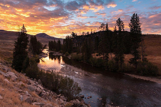 Sunset over the Gardner River, Yellowstone National Park White Modern Wood Framed Art Print with Double Matting by Peaco, Jim