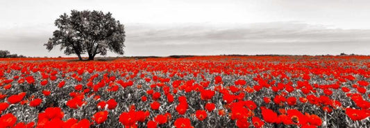 Tree in a poppy field White Modern Wood Framed Art Print with Double Matting by Anonymous