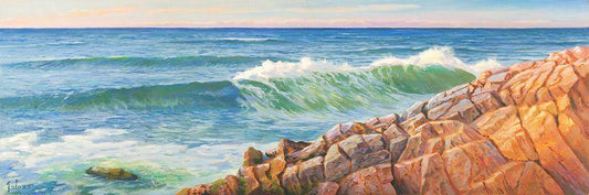 Sun shining over rocky waves White Modern Wood Framed Art Print with Double Matting by Busch, Niels