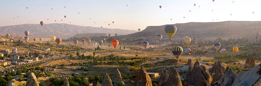 Air Balloons in Goreme, Cappadocia, Turkey White Modern Wood Framed Art Print with Double Matting by Pangea Images