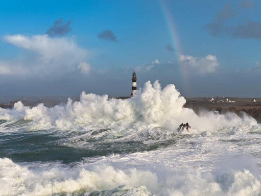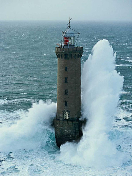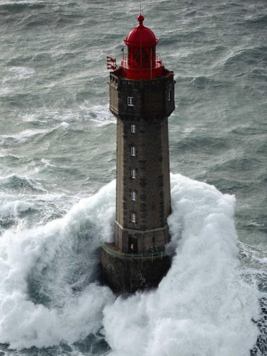 Phare d Ar-Men Bretagne White Modern Wood Framed Art Print with Double Matting by Guichard, Jean