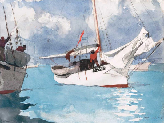 Fishing Schooner, Nassau White Modern Wood Framed Art Print with Double Matting by Homer, Winslow