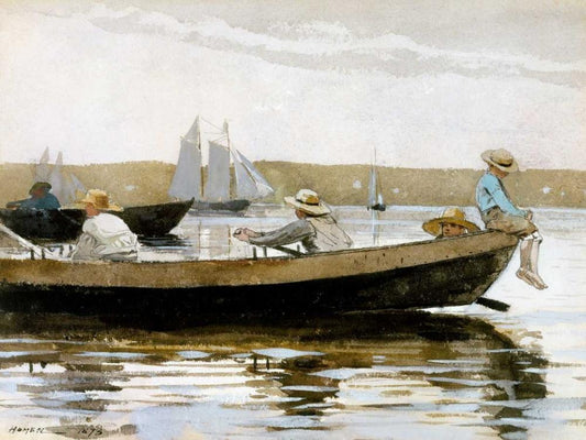 Boys in a Dory White Modern Wood Framed Art Print with Double Matting by Homer, Winslow