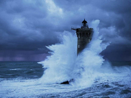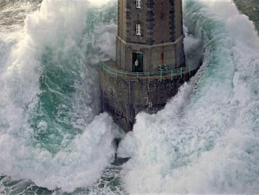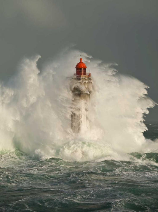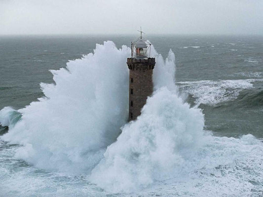 Phare du Four lors d une tempete White Modern Wood Framed Art Print with Double Matting by Guichard, Jean