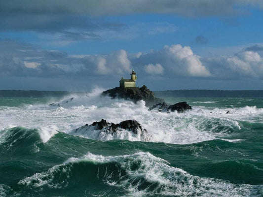 Phare de Tevennec mer d’Iroise White Modern Wood Framed Art Print with Double Matting by Guichard, Jean
