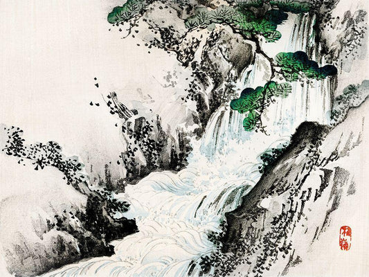Waterfall White Modern Wood Framed Art Print with Double Matting by Bairei, Kono