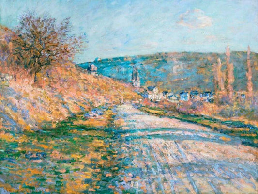 The Road to Vetheuil White Modern Wood Framed Art Print with Double Matting by Monet, Claude