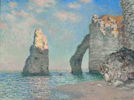 The Cliffs at Etretat White Modern Wood Framed Art Print with Double Matting by Monet, Claude