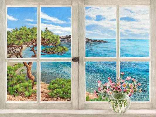 Baie mediterraneenne White Modern Wood Framed Art Print with Double Matting by Dellal, Remy