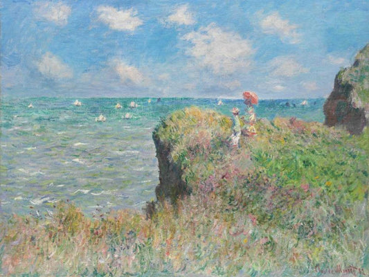 Cliff Walk at Pourville White Modern Wood Framed Art Print with Double Matting by Monet, Claude