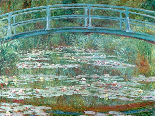 The Japanese Bridge Pond with Water Lillies White Modern Wood Framed Art Print with Double Matting by Monet, Claude