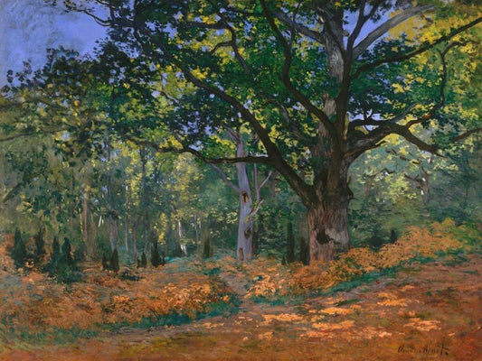 The Bodmer Oak Fontainebleau Forest White Modern Wood Framed Art Print with Double Matting by Monet, Claude