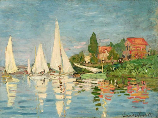 Regatta at Argenteuil White Modern Wood Framed Art Print with Double Matting by Monet, Claude