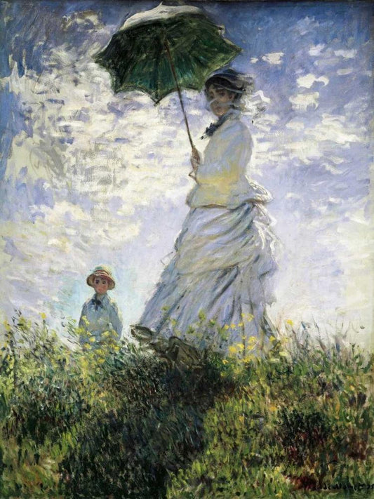 Femme a l’ombrelle White Modern Wood Framed Art Print with Double Matting by Monet, Claude