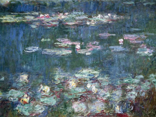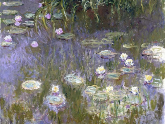Water-Lilies White Modern Wood Framed Art Print with Double Matting by Monet, Claude