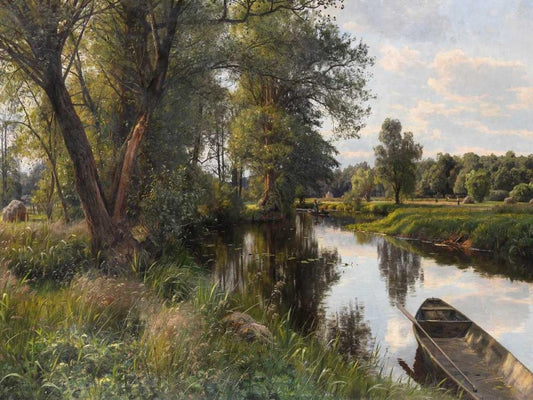 Sommer landskab White Modern Wood Framed Art Print with Double Matting by Monsted, Peder