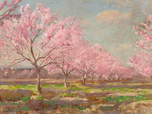 Peach orchard on Mavericks farm White Modern Wood Framed Art Print with Double Matting by Onderdonk, Julian