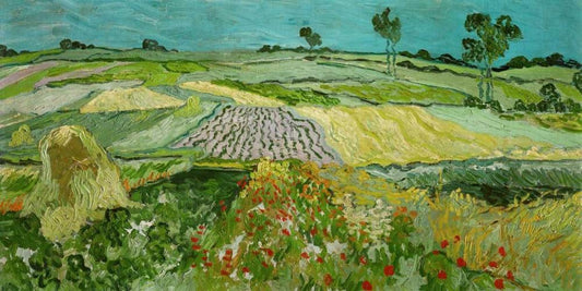 La plaine dAuvers White Modern Wood Framed Art Print with Double Matting by Van gogh, Vincent