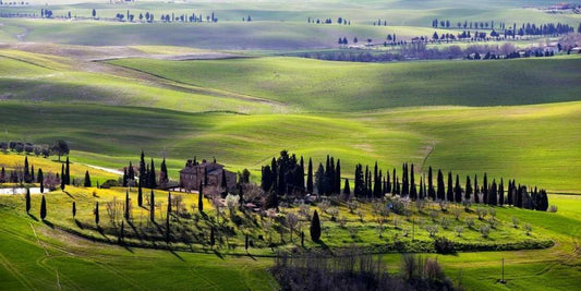 Country houses in Tuscany White Modern Wood Framed Art Print with Double Matting by Ratsenskiy, Vadim