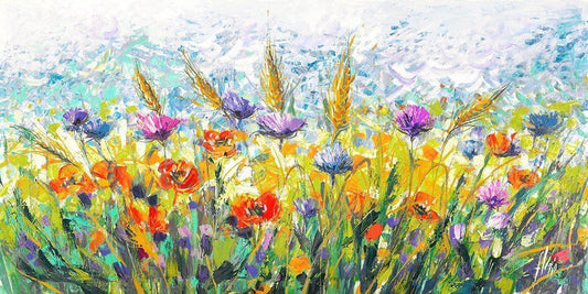 Campo in fiore White Modern Wood Framed Art Print with Double Matting by Luigi, Florio