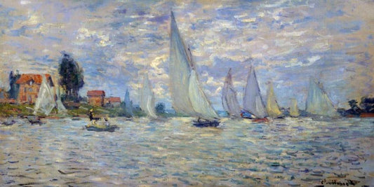 Les barques regates a Argenteuil White Modern Wood Framed Art Print with Double Matting by Monet, Claude