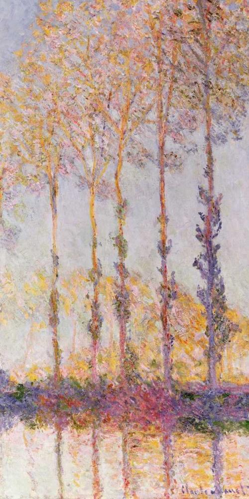 Poplars on the Banks of the Epte White Modern Wood Framed Art Print with Double Matting by Monet, Claude