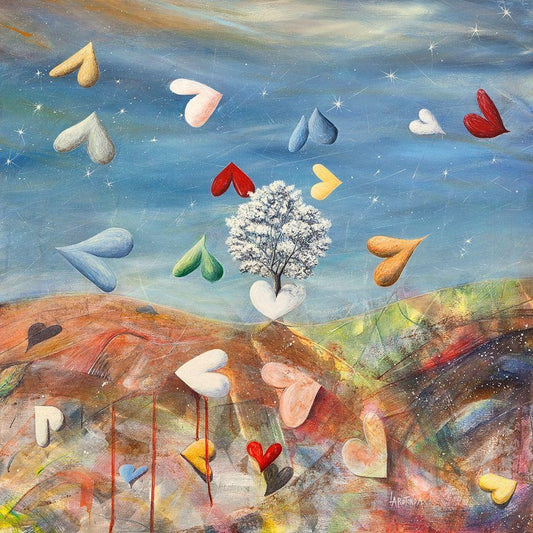 Cuori in liberta White Modern Wood Framed Art Print with Double Matting by Larotonda, Donato