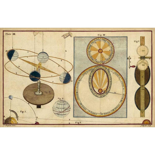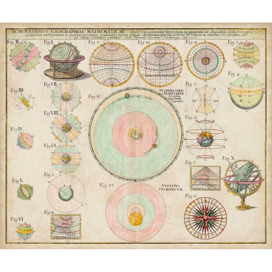 Schematics, Mathematics and Geography Chart Black Modern Wood Framed Art Print with Double Matting by Unknown