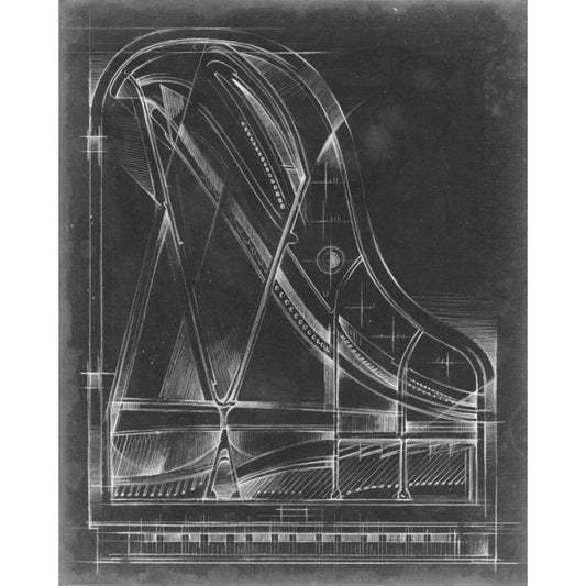 Grand Piano Diagram Black Modern Wood Framed Art Print with Double Matting by Harper, Ethan